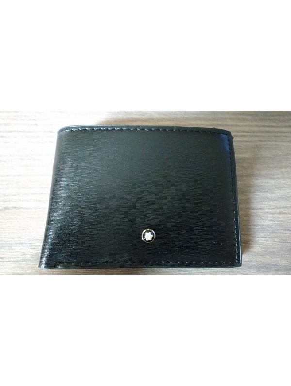 Carteira Mont Blanc, disposição horizontal, em couro, com porta-cartões, cédulas e documentos.