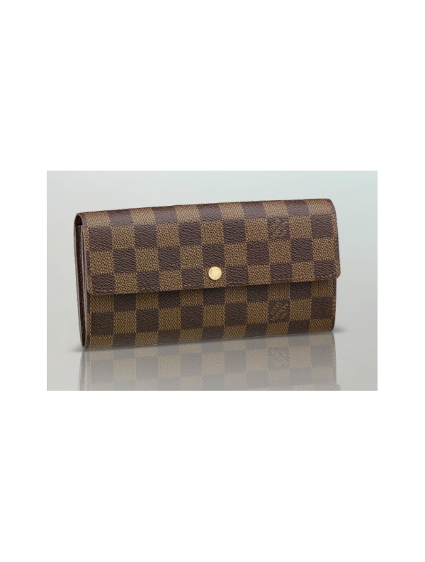 Carteira Louis Vuitton disposição vertical, em couro, com porta-cartões, cédulas e documentos.