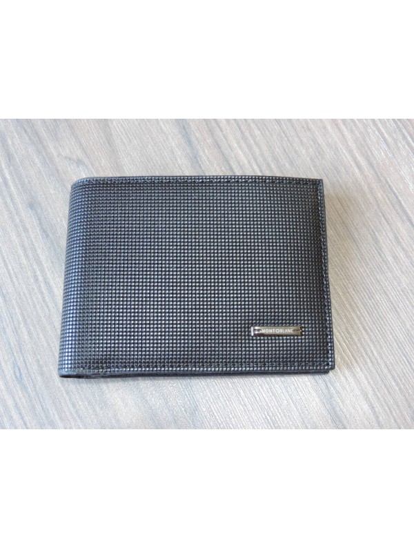 Carteira Mont Blanc, disposição horizontal, em couro, com porta-cartões, cédulas e documentos.